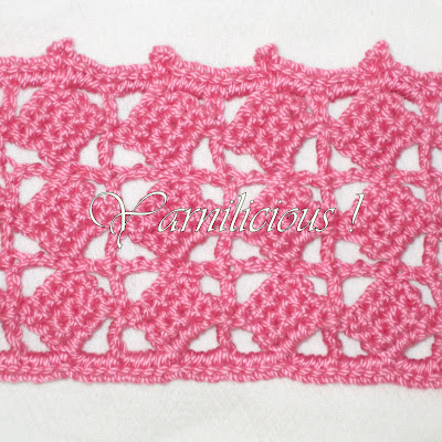 Round 9: 4 ch (counts as 1dc and 1 ch), dc in the same st(V-Stitch made), *skip next st; dc in next st, 1 ch, dc in same st #, repeat from * to # around, sl st on top of 3rd ch of the first four chain to join. (36 V-Stitches)